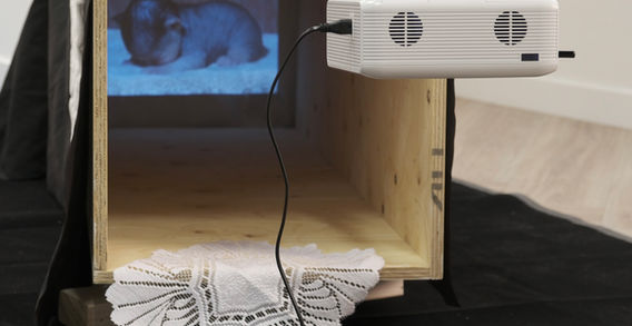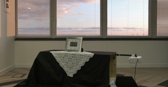 The early version of Who’s There? was presented for the first time, featuring a coffin-shaped plinth installation that explored the relationship between the viewer’s physical posture and the screen.